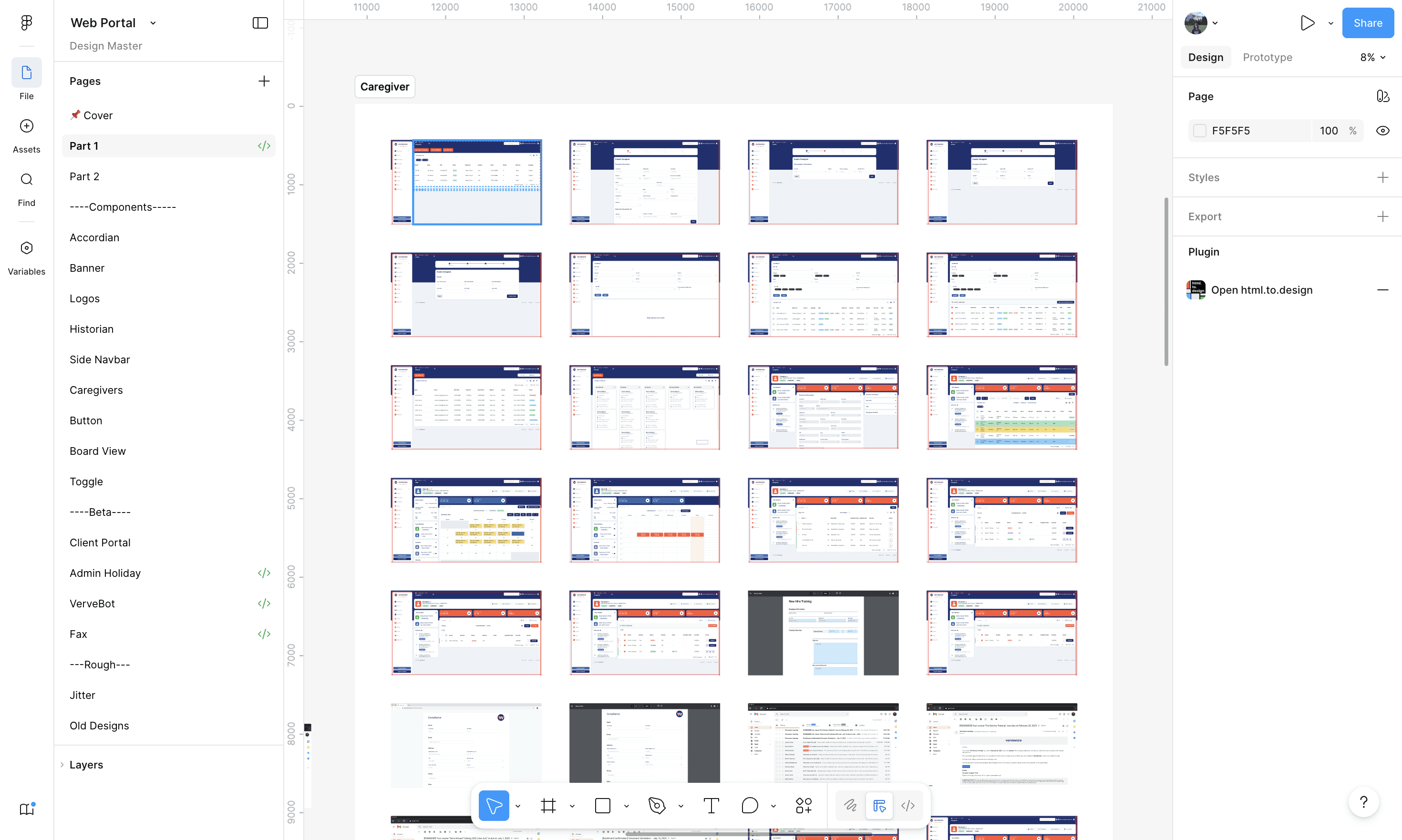 I had worked on the design system earlier, but the main file became too component-heavy. Too many nested components made Figma crawl. Prototypes took forever to load and the file was nearly unusable. We decided to switch gears: build a broad base component library covering everything we need, and keep the main working file focused on frames and using those components.